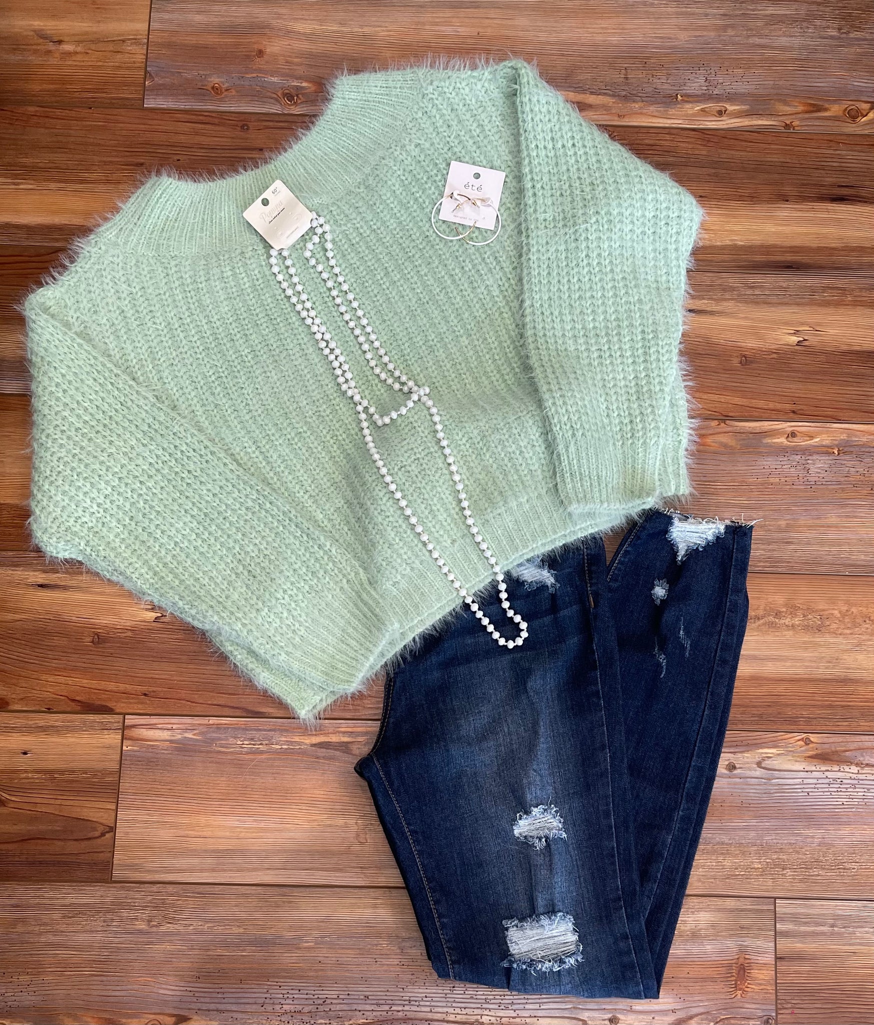 Mint Green Extra Soft Sweater with Fuzzy Detail