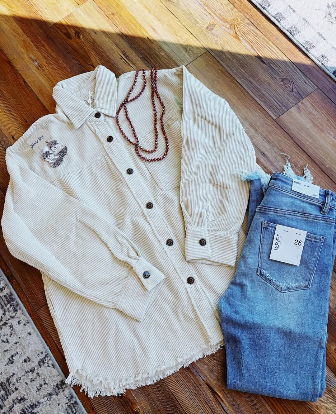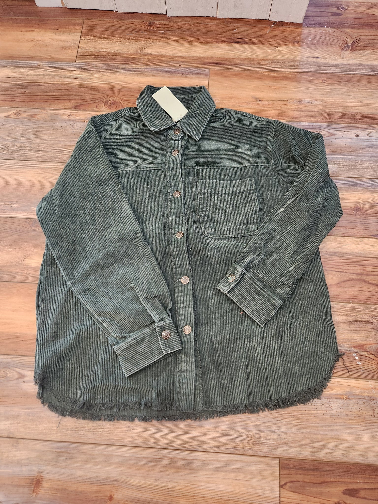 Oversized washed fabric corduroy button down jacket in three colors. ECRU, terracotta, and olive.